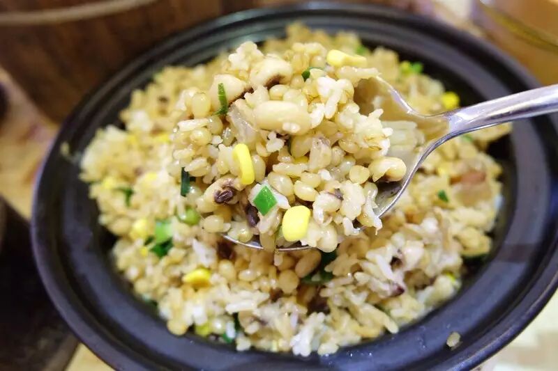 杂粮饭绝对是亮点,眉豆黍麦玉米….不绵软还很有嚼劲,感觉一个人能吃完整锅呢。