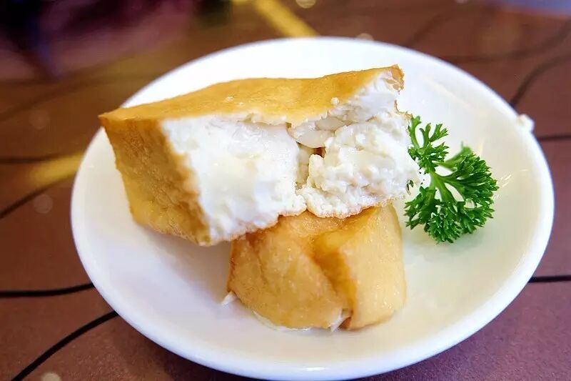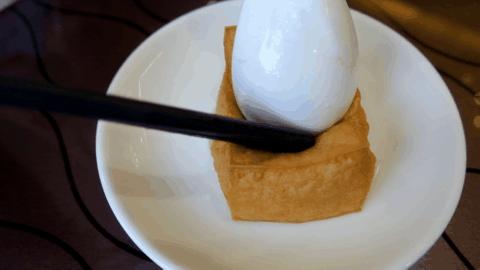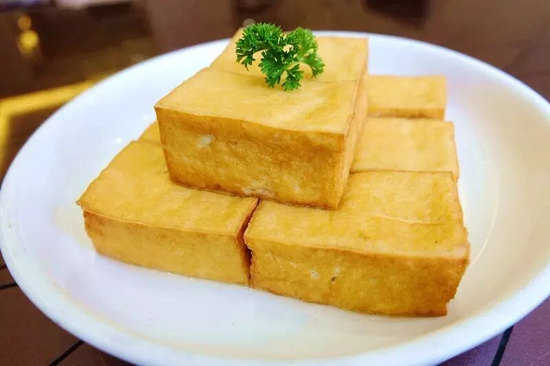 盐水豆腐里面本身有盐味,不需要另外加盐,在热油中稍微翻滚,待表皮金黄喷香捞起,里面嫩滑如初。
