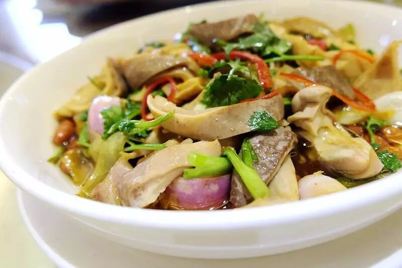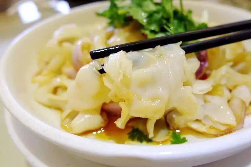 猪肚的煮法相当讲究,一份完美的葱油猪肚,要把握好脆而不韧,爽而有嚼头的口感,红葱头的香味经过热油的爆香,充分散发出来了。