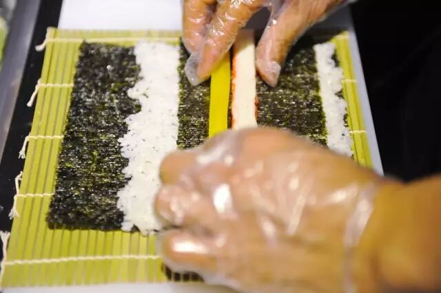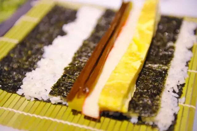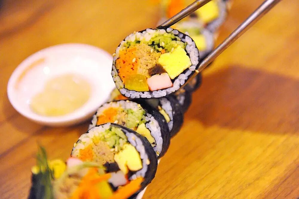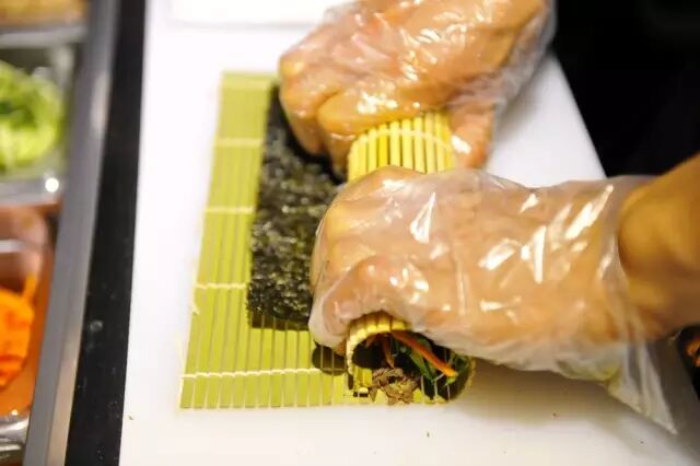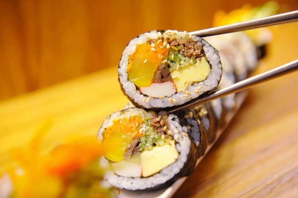 好久没有吃过这么足料的紫菜包饭!青瓜丝、鸡蛋、蟹柳、烤牛肉…..满满的馅料,挤得连白饭都“退位”了。