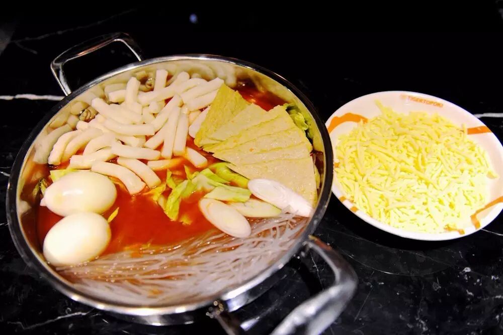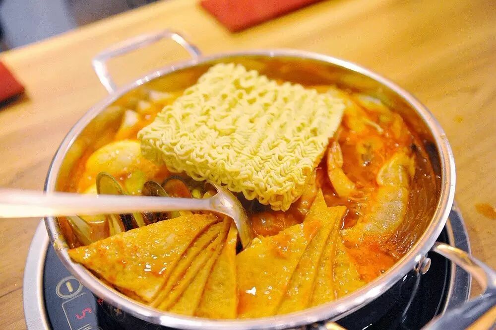 咕噜咕噜~热腾腾地锅底直冒泡,年糕、拉面、鱼饼在散发浓浓芝士香的汤汁中翻滚,绝对是它的最惊艳的时刻。