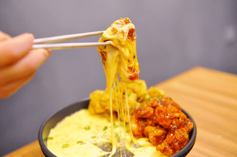 只要不停拉丝,就可以一直裹在鸡块上,不知不觉就缠了那么厚的芝士,简直多到流下来了!!