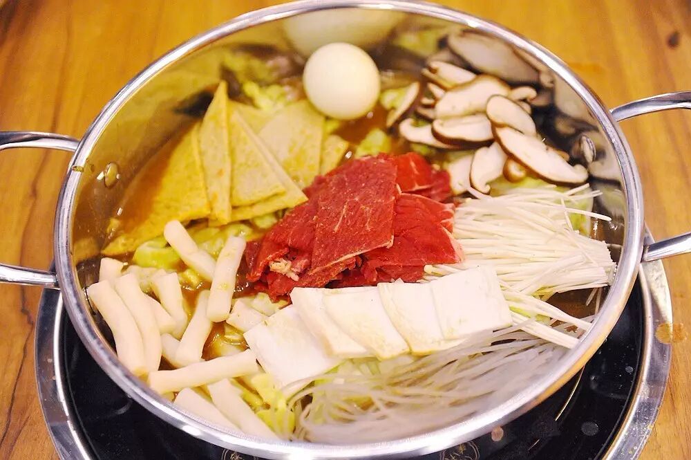 一直觉得韩国火锅的微辣酱汁和芝士是绝配,浓郁的奶味中和了辣味的刺激,每款年糕火锅都会配备鱼饼、年糕、粉条、鸡蛋、卷心菜,端上桌一大锅,分量十足。