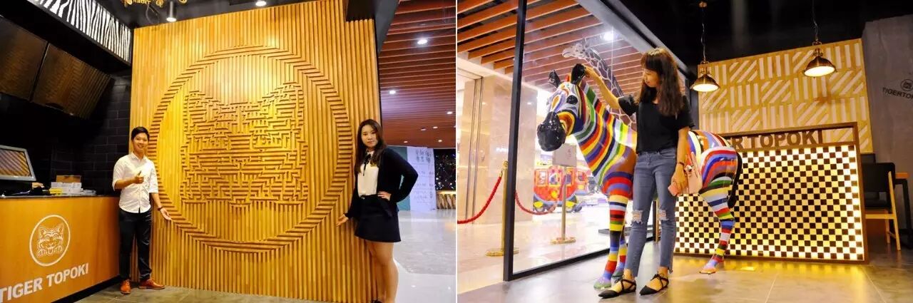 这家李光洙最爱的年糕火锅,黑色+金色的装修风格真的很惹眼,还有很多萌萌哒动物元素,炫酷又有爱。