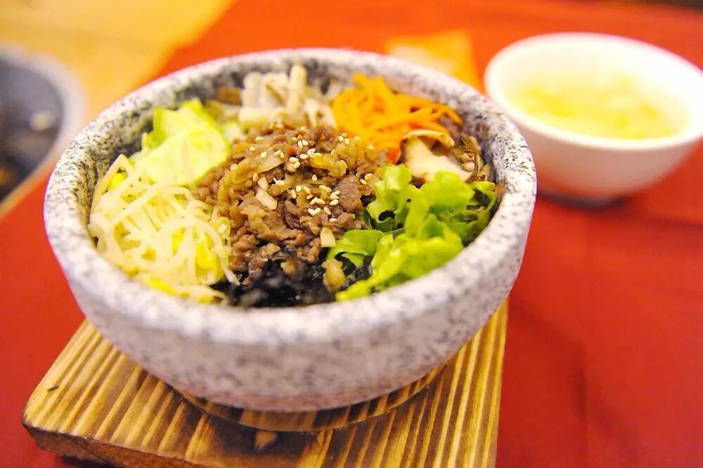 香喷喷的烤牛肉堆在中间,旁边还配了一包辣椒酱和芝麻油,可以根据自己喜欢的口味添加进去。