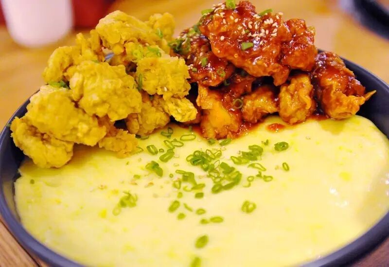 两种口味的炸鸡拼盘,再也不用纠结选哪一款了。调味的酱汁带有微甜,相比起来原味的更加入味。