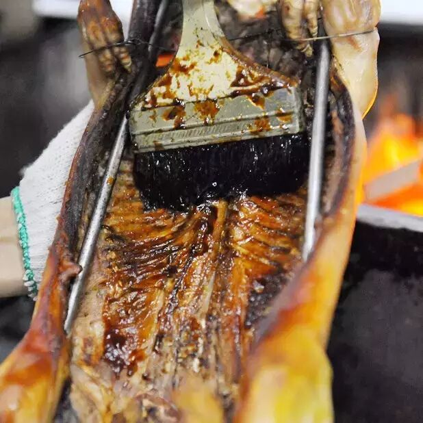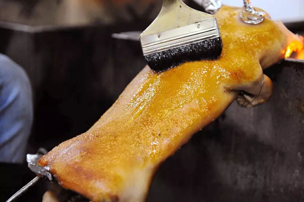 ▼中途需要刷几遍油,不止能让乳猪表面颜色更透亮,还能洗掉表面的灰!!