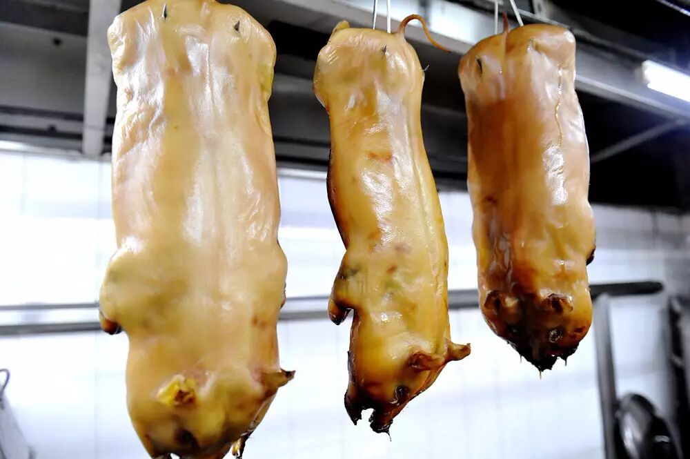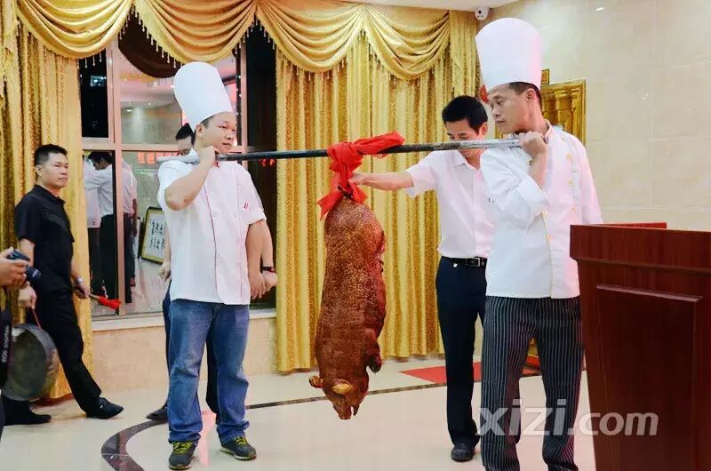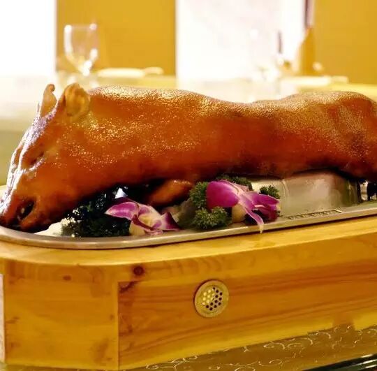 ▼第一次深入后厨看烤乳猪的全过程,真是大开眼界!!先晒一下成品,紧跟着小编的镜头,一起去看看这道招牌名菜是怎么制作的。