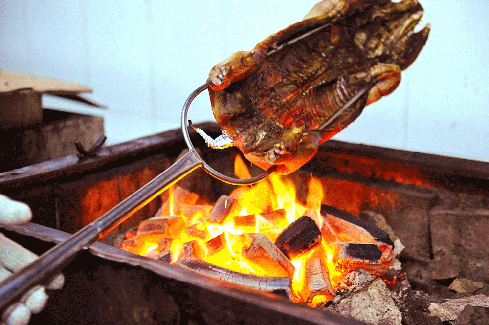 ▼出炉啦出炉啦!!这时候的乳猪,在炭火的烘焙下,已经熟透而且入味。晾凉之后果断开烤。