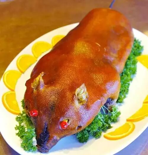 红烧乳猪意味着鸿运当头,在新年传统“意头菜”担当着重要角色。色泽金黄诱人、皮脆酥香,一口酥皮就足够俘虏食客的挑剔味蕾。