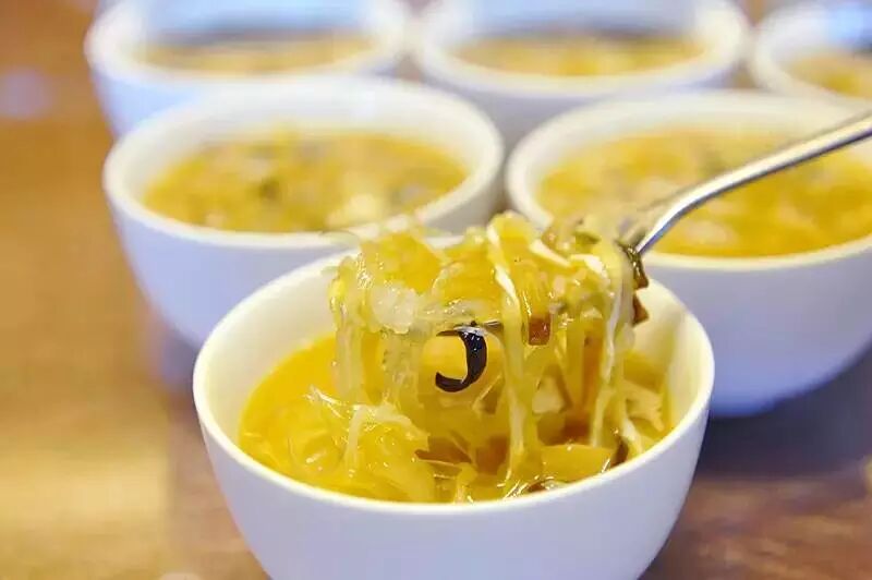 鱼翅、鲍鱼丝、海参、鸡丝……除了对原材料的挑选和讲究的刀工之外,最重要的还是勾芡的掌握,浓稠适宜,小小一碗浓缩了全部食材的精华。
