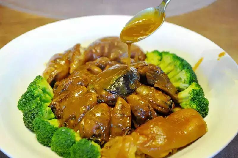 听名字就知道是过年的意头菜,比两个拇指还大的蚝豉一咬下去,啖啖是肉,相对小蚝豉而言,鲜味更浓,淋上浓郁的鲍鱼汁,更是一绝。