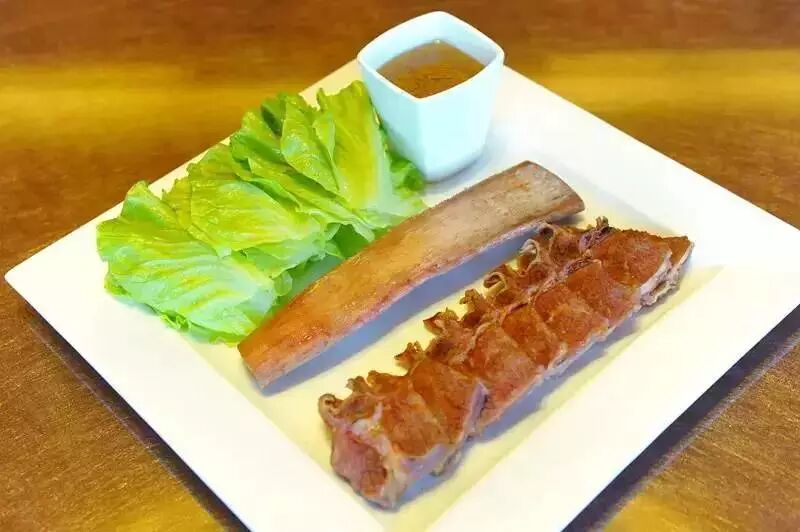 精选的牛肋骨被切成小块,夹起一块蘸上蒜汁,用包菜裹住后送入口中,鲜嫩的牛肉咬起来毫不费力,肉汁也在口中慢慢渗出。