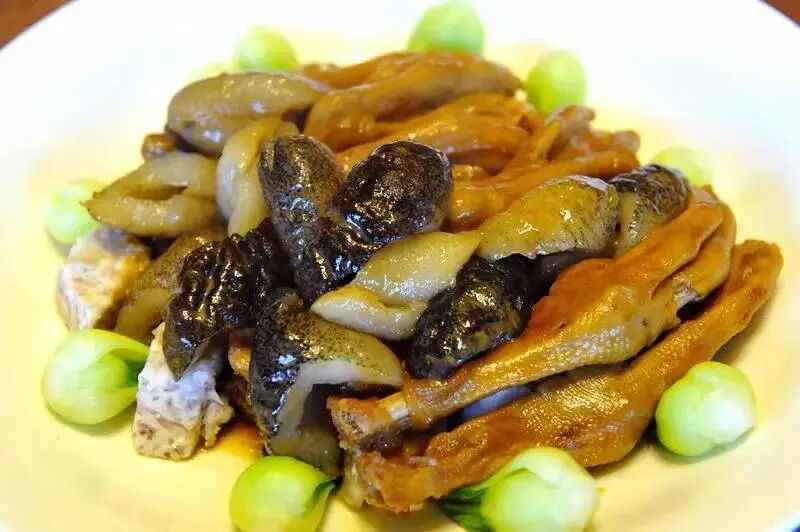 还未淋上鲍汁前,看着这饱满厚实的海参,已经按捺不住口水直流,焖得绵软入味的鹅掌,入口即脱骨,淋上浓郁的鲍汁后鲜味十足。