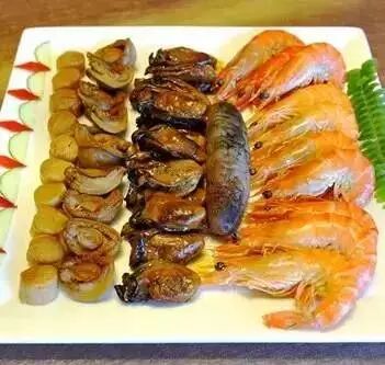 上层分别放鲍鱼、蚝豉、干贝,乾隆8头鲍鱼和80头的日本瑶柱,装点在整个盆菜中尤其抢眼!