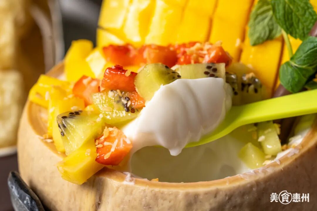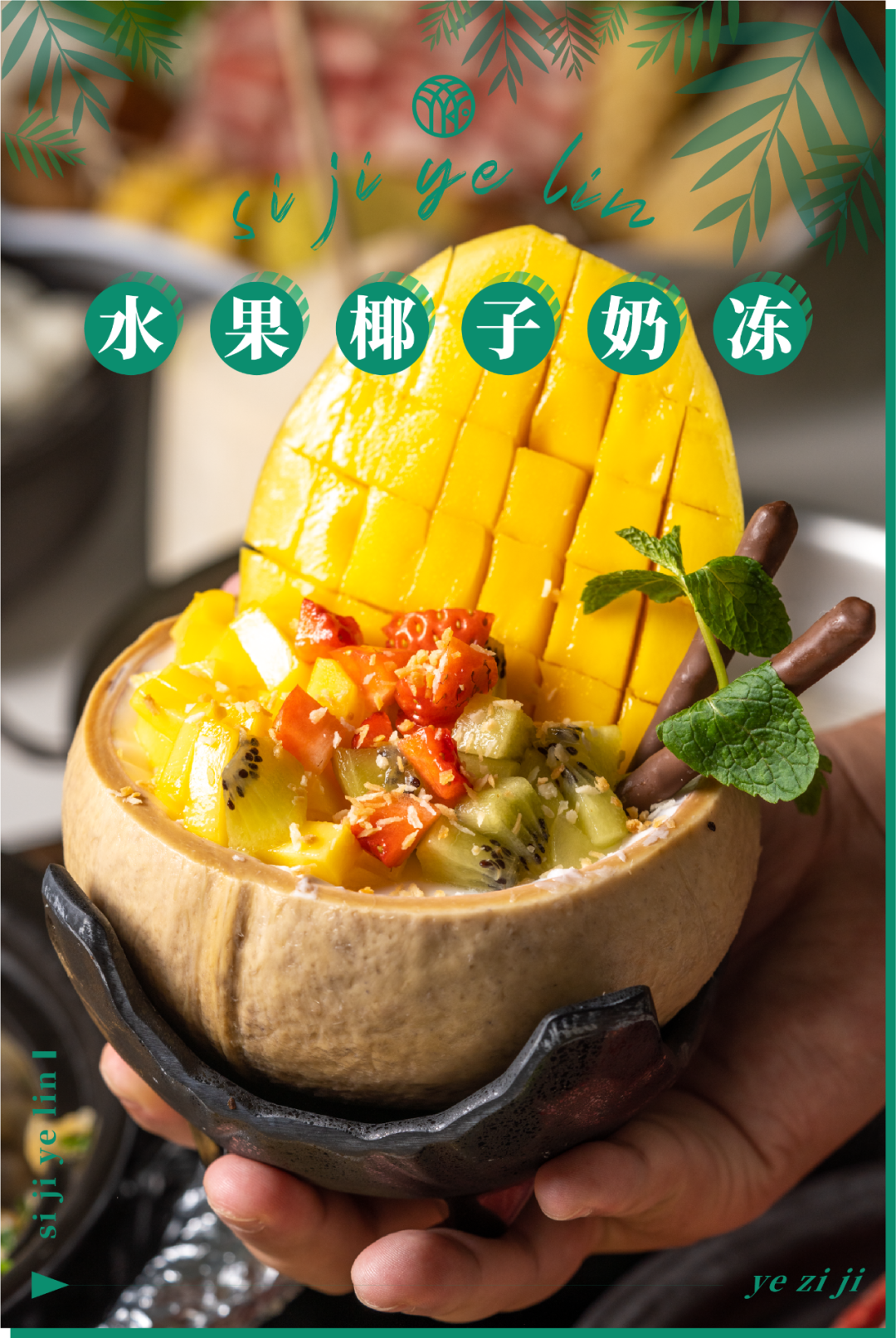 强烈推荐这款水果椰子奶冻!椰香+奶香的奶冻,口感相当滑嫩,呲溜一下就滑进口中~再铺上满满的鲜果,色彩缤纷相当诱人!