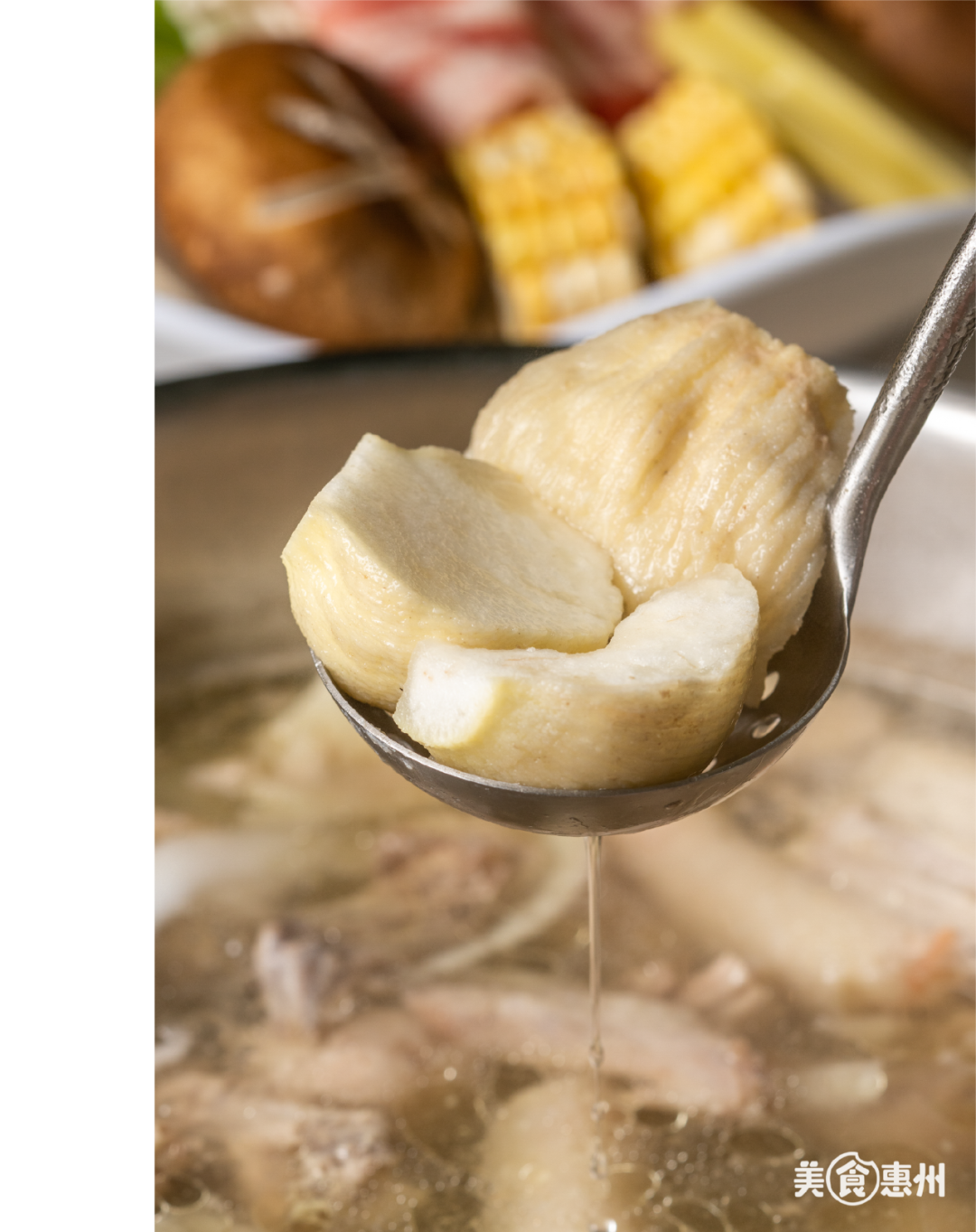 竹笙如同一个白白胖胖的海绵,吸满清甜椰子汤底,一口下去直接爆汁,鲜美程度直呼一绝!