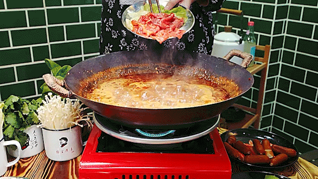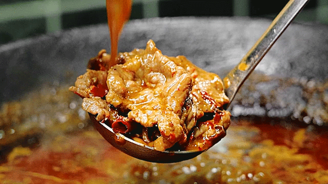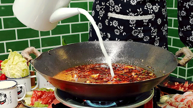 地摊火锅讲究锅底现炒,秘制酱料、牛油、腊八酱、猪油、干辣椒、葱姜蒜等10种底料,据说锅底里最重要的秘制酱料可是由100+种调料混合而成的,下了单才给你现炒,色香味那叫一个俱全。