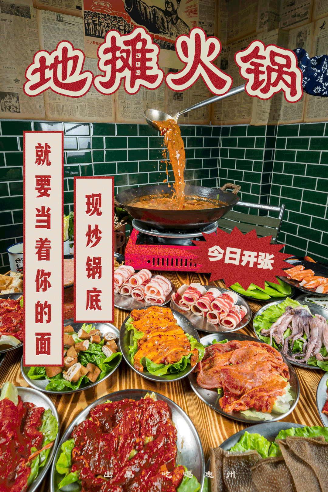 火爆长沙的【地摊火锅】,惠州也有啦!【地摊火锅】顾名思义价格很地摊,环境也很地摊。但其实地摊火锅的亮点在于“锅底现点现炒”,阿姨上桌会自带一个装满各种底料的提篮,当着你的面就开始炒锅底,干净卫生看得见。
