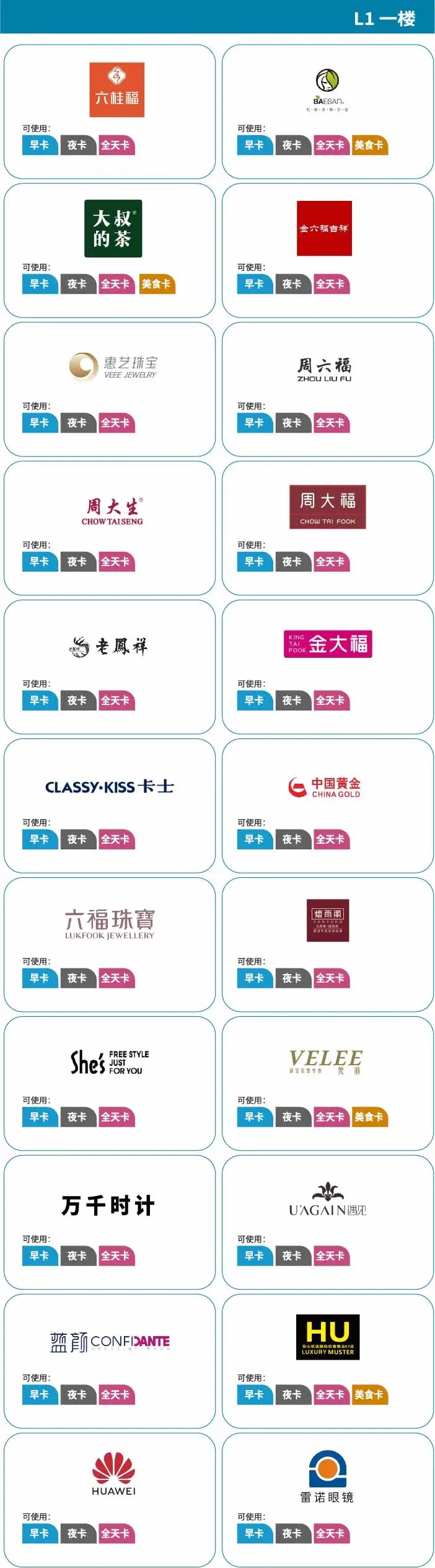 同一时间段内,所有卡可叠加一起使用