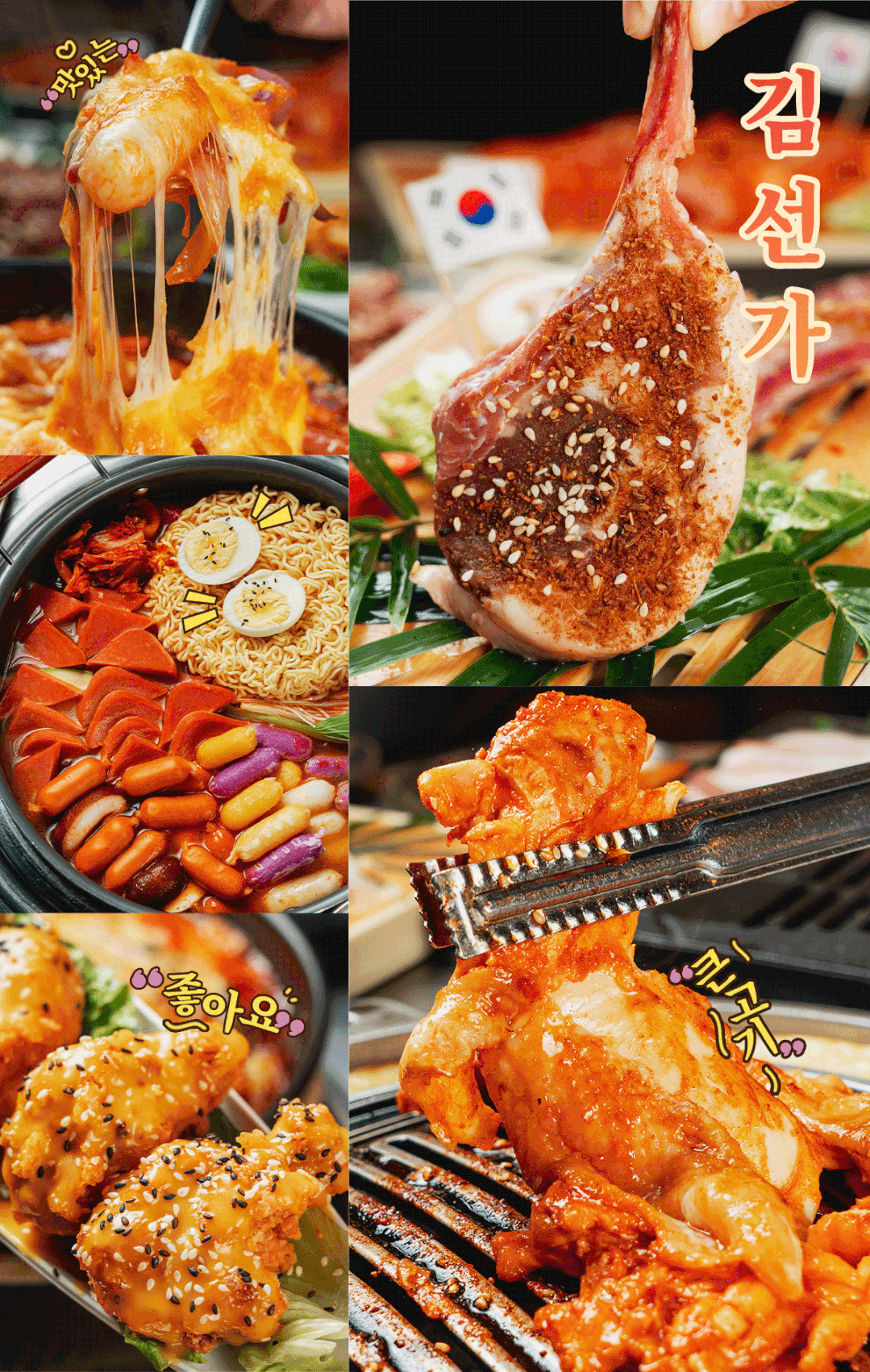 它是金善家韩国烤肉,主打平价韩国烤肉和韩式料理,不知不觉已经一周年了。这次老板大方让利,99元抢超值套餐,平均下来一盘菜14+元,还连续一个月免费送梅花肉,真是要谢谢老板了~