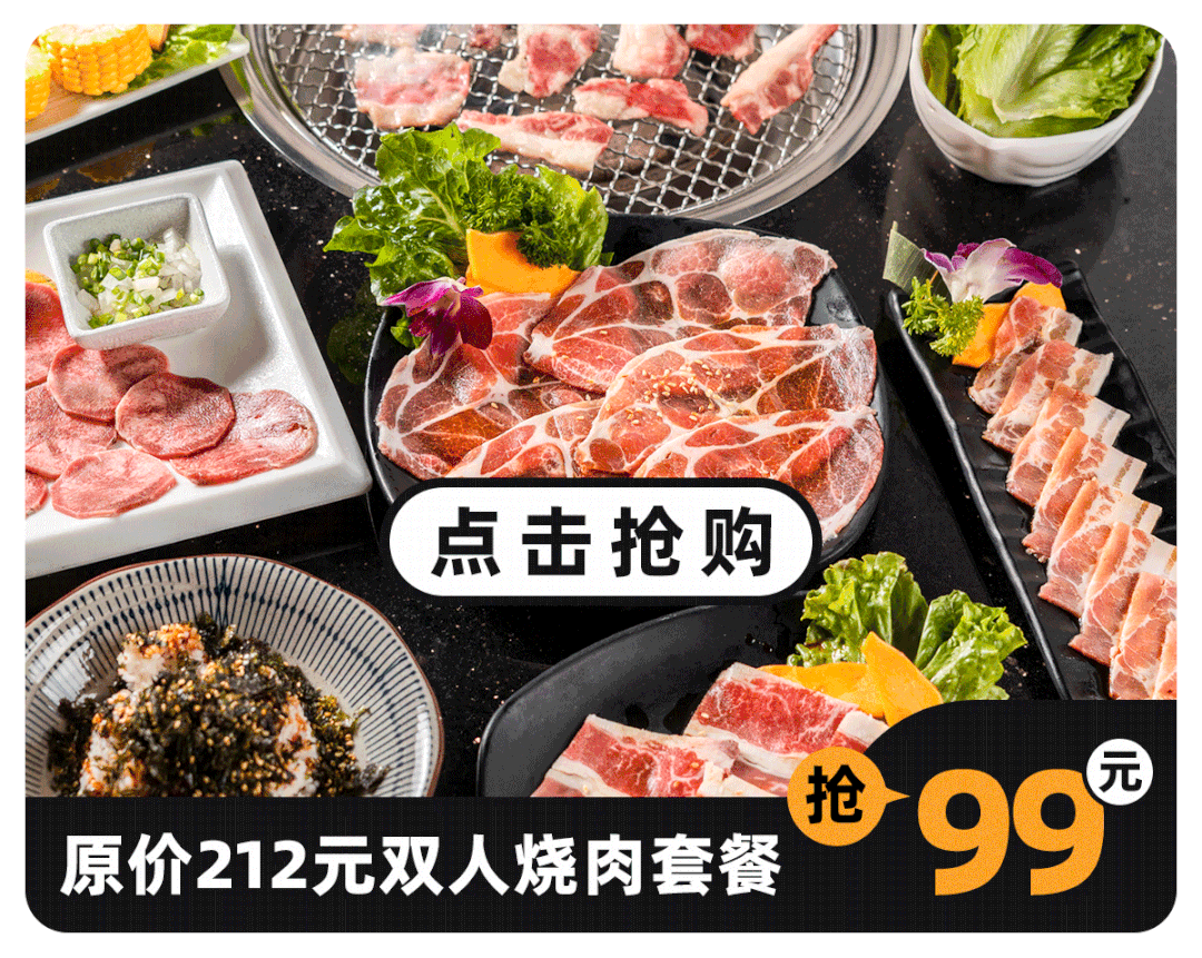 158元午间双人烤肉套餐、198元3-4人烤肉套餐、258元品质双人餐……各种套餐挑花眼,只为帮你把钱省!