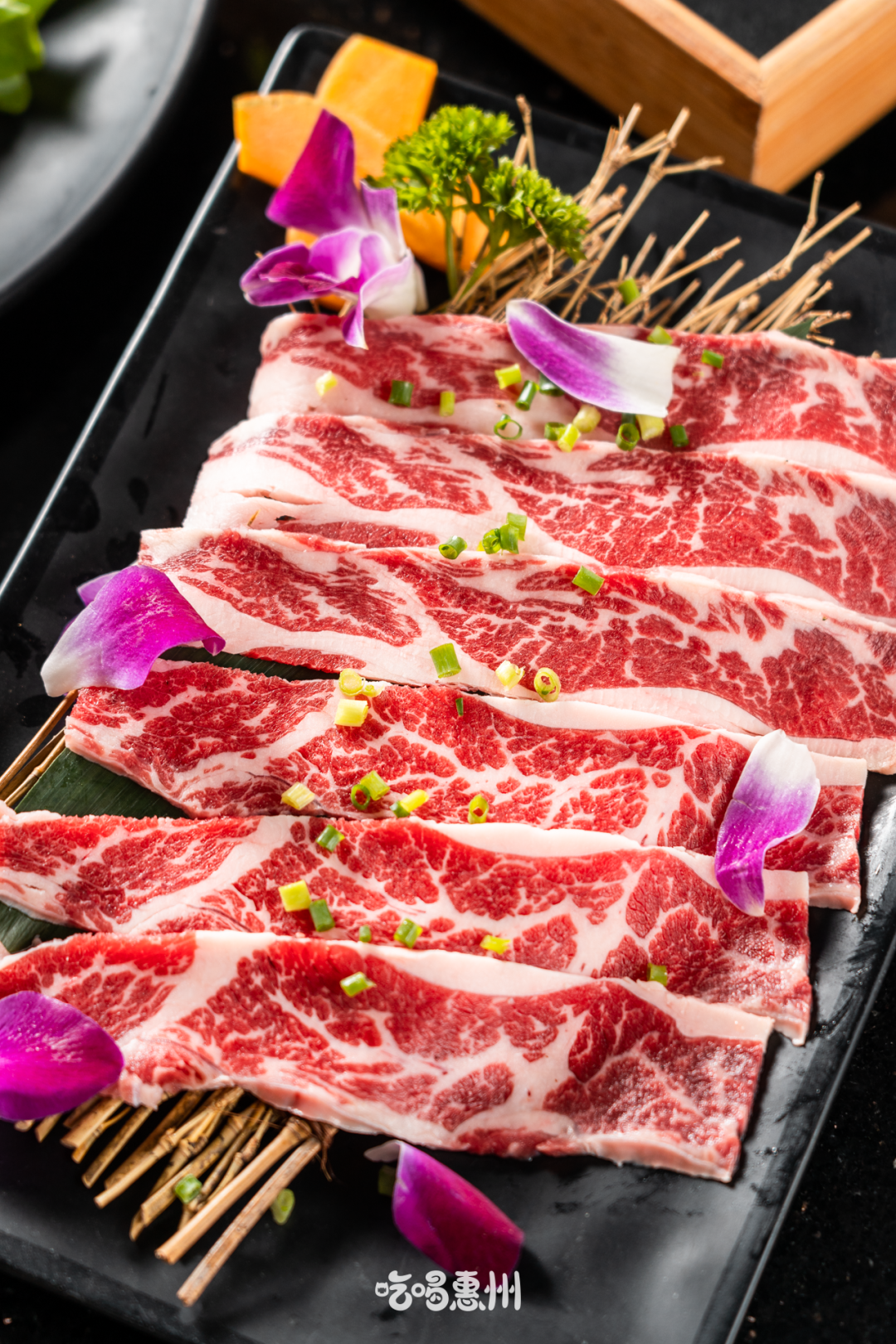 极黑牛羽下肉免费送啦!这个部位的肉最是细腻丰富、纹理分明,薄切的方式更是让这片肉的口感达到极致。