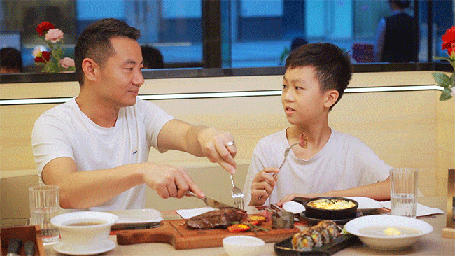 嫩牛柳十分软嫩,夹杂着一点筋道,松露和牛肉在口中糅合缠绵,带来一场口腔上的盛宴。当爸爸的,要学会教孩子怎么品尝“好东西”。