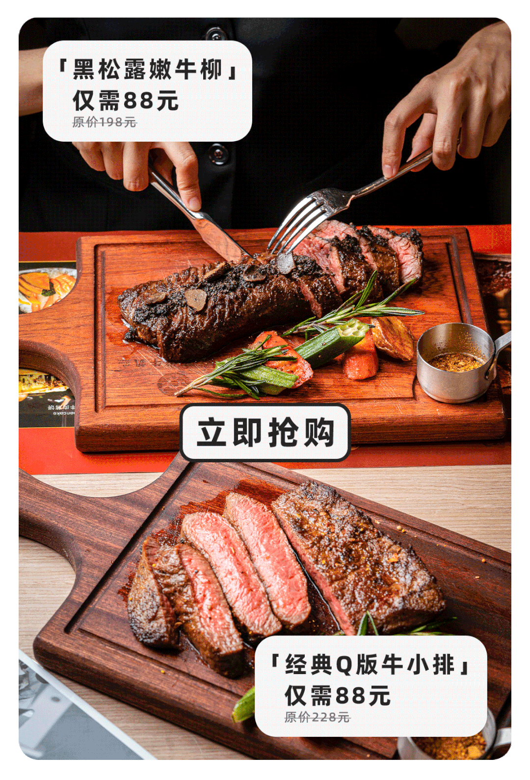 扒如其名,Q版牛扒便是靠着QQ弹弹的肉感而闻名的。于高温中炙烤获得一层香煎的外壳,以及弹嫩的口感,这牛肉光看着就让人心动。