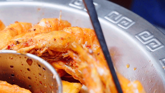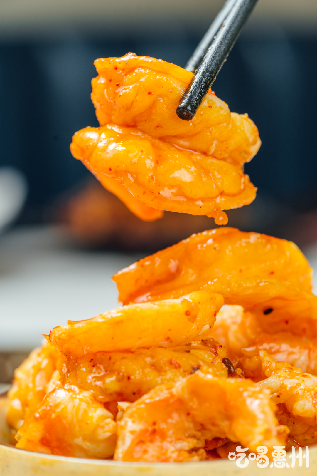 来虾叔有座,招牌大虾你一定要试试。大虾用料很猛,经过开背、油炸、爆炒后被整齐地摆放在锅边,扎扎实实一整圈,一上桌我的眼睛就不受控制了。