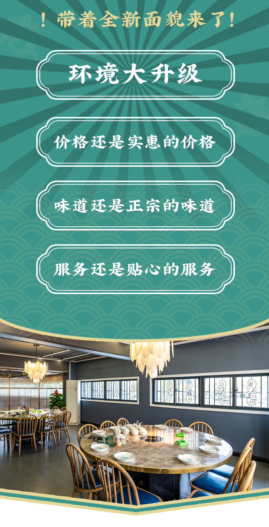 为了给每位食客带来更加舒适的用餐体验,这次将开了7年的长湖苑老店搬迁升级啦!就在原址不远处,新店环境可以说是焕然一新,令人眼前一亮!