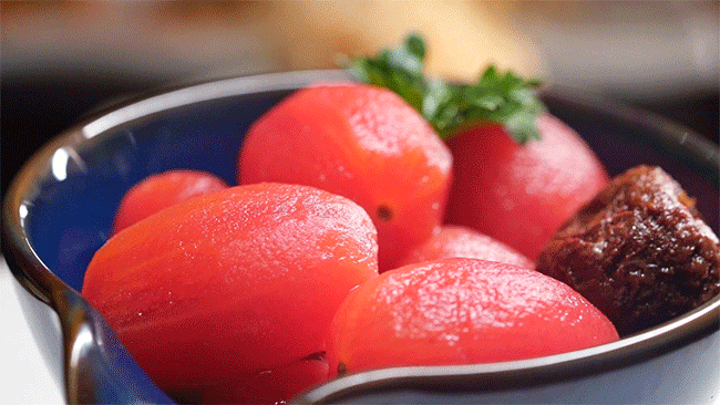 平平无奇的梅子小番茄,作为前菜,把“开胃”做到了极致。果酸与渍汁碰撞引发的酸甜感,如同“化学反应”一般让人迷恋。