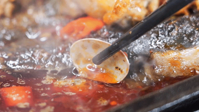 堆成小山的牛蛙和花甲,酥烂柔软的鱼肉,搭配着咕嘟咕嘟冒泡的酱汁,尽情的沉浸在肉欲的海洋中,还有4款口味可选,辣与不辣都有人爱!