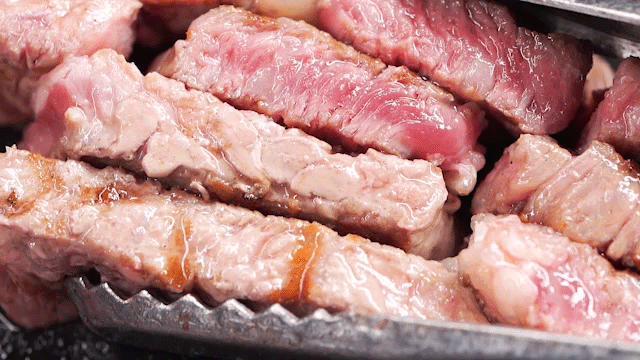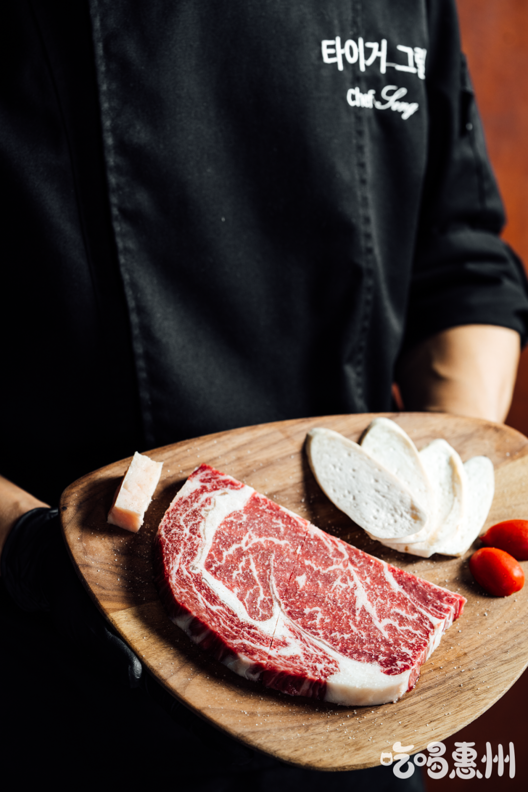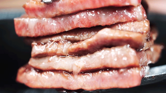 经过72个小时韩国低温熟成技术,才能取出。熟成肉的风味更好,味道更高级。眼肉是牛肉中最能体会到原汁原味,也是口感最好的部位。