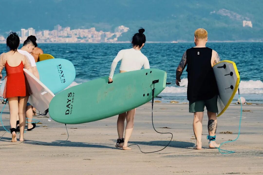 双月湾的浪点聚集了一批冲浪俱乐部(outside、8mm、海枭和土酷等,欢迎补充),他们都有提供冲浪装备的租赁服务和教学,建议提前联系后前往。不建议直接驱车到店,因为老板可能也在海里浪着。