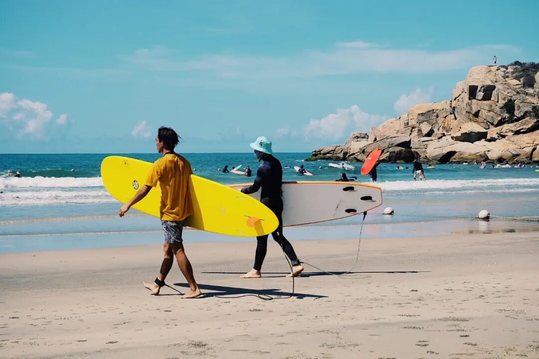这里的浪高通常在0.4-1.2m之间,可以同时满足不同阶段的浪人冲浪。沙滩平缓,水质良好,对初学者非常友好。