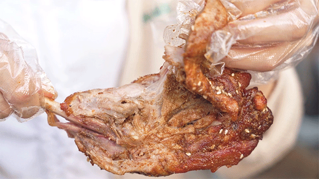 买了一只学生强烈安利的鸭腿,个头特别大,胃口小的女生一只鸭腿就能做一餐。外皮焦脆,里头的肉质却很细嫩,奥尔良风味,甜滋滋的~