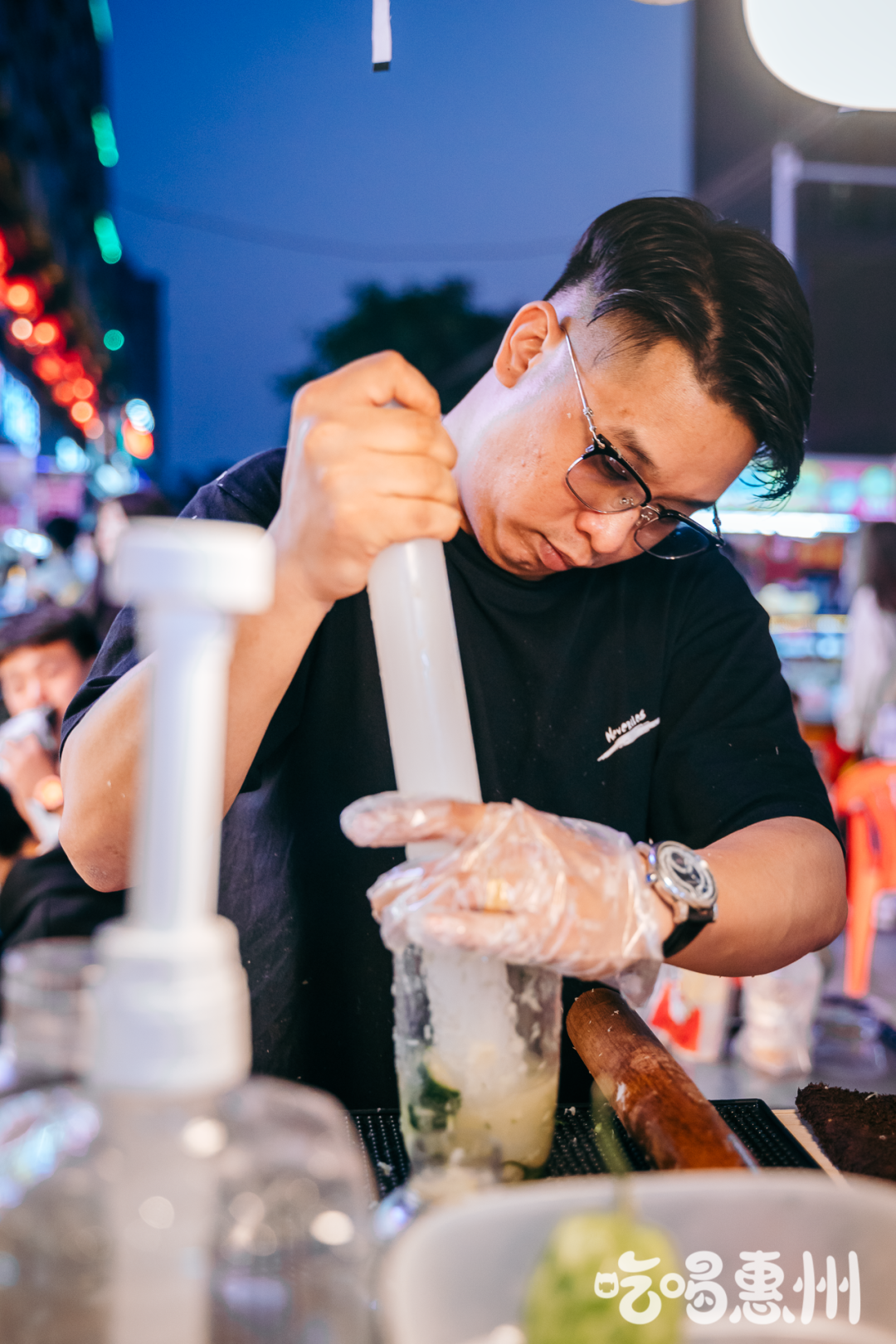 把香水柠檬和冰块一起捣碎,清香就散发出来,价格不贵,每杯都是十元。酸酸甜甜的味道,冰凉上头,这种天气来一杯,超级清爽。