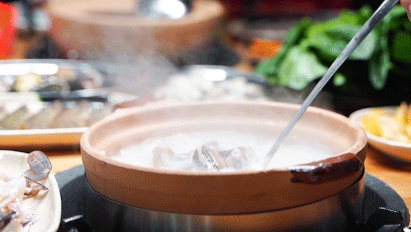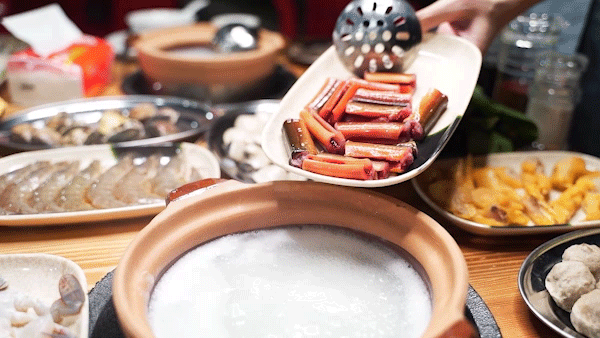据说粥底火锅最讲究涮菜的顺序,先涮海鲜河鲜再涮肉类,最后涮蔬菜。人多的话可以拿多点不同的菜品,一起分享~