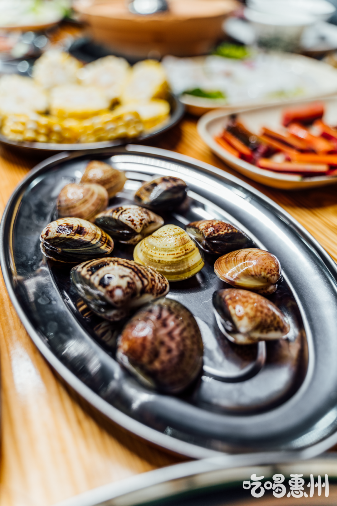 迅速捞起的贝肉,壳内带着肉汁和粥水,一口一个,鲜味爆发,清甜无比。