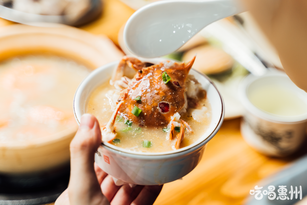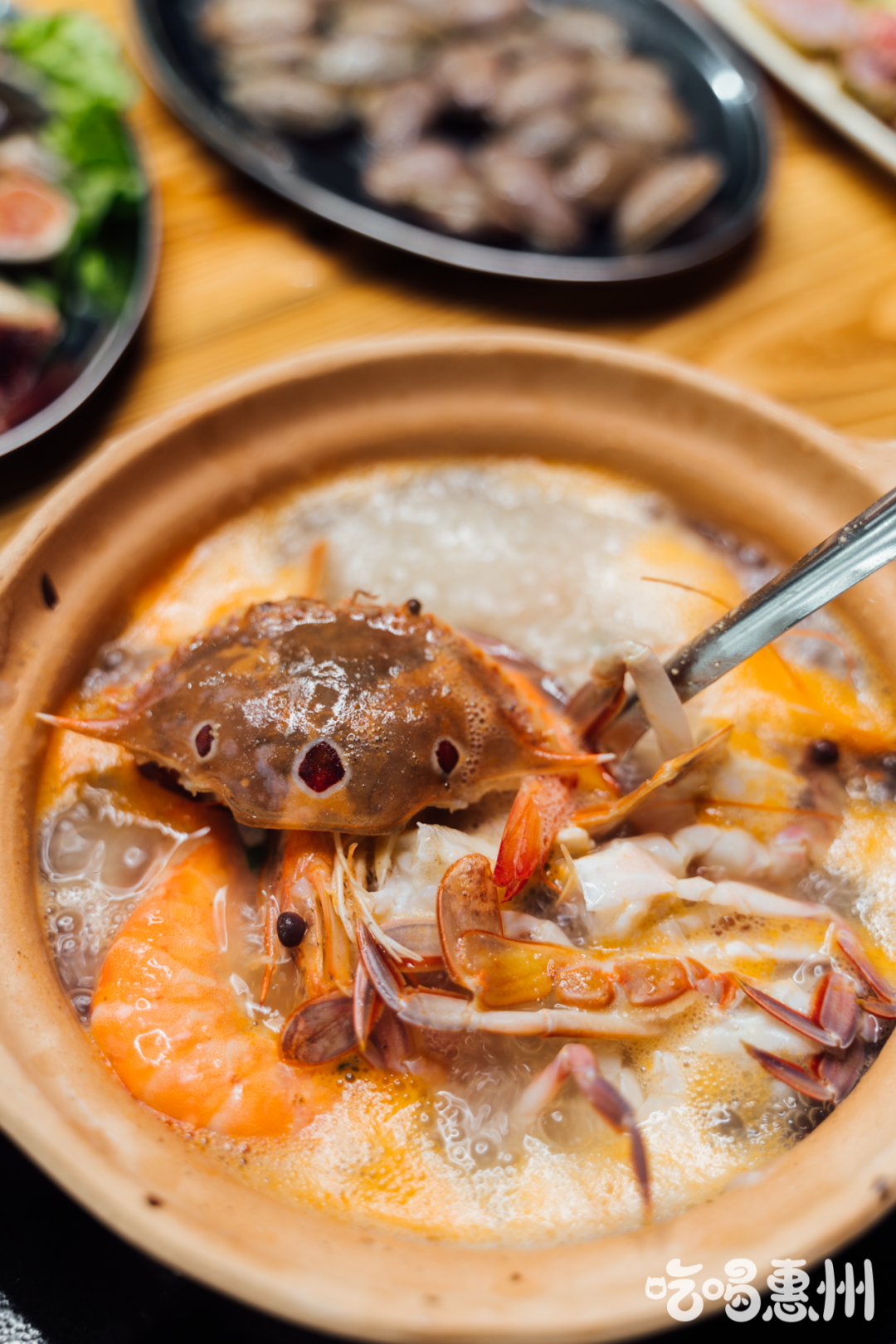 虾蟹粥里的虾无疑是海鲜控的挚爱,粥水浸润过的虾即使不蘸任何酱料,也十分鲜美,爽口弹牙!
