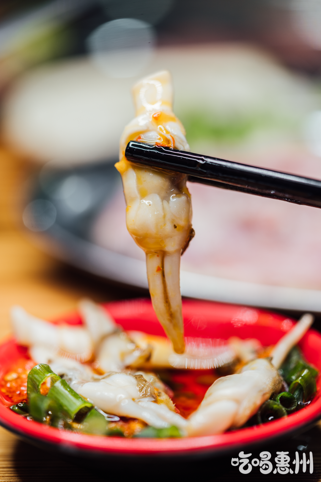 涮上35秒就可以起锅,蛏子肉依旧饱满,蘸上蒜蓉辣椒酱,鲜嫩多汁,一口气可以吃好多个!
