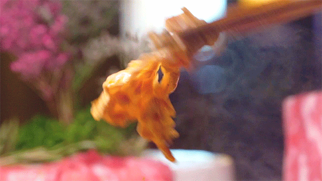 下锅之前,裹上蛋液,嫩滑x2!!涮上十五秒即可出锅,肥瘦相间,吃起来口感超级爽滑。