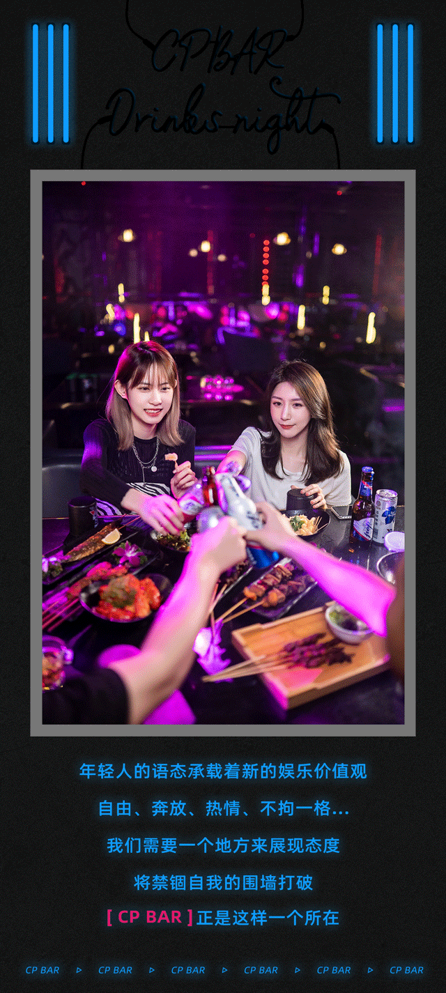 “无低消,无隐形消费”、“不求买醉,只求体会”、“烧烤配音乐,原地就快乐“,这是在『CP BAR』可以享受到的“独家”体验,当然,这也是我们年轻人喜爱它的理由,一起来解锁夏日的微醺密码吧。