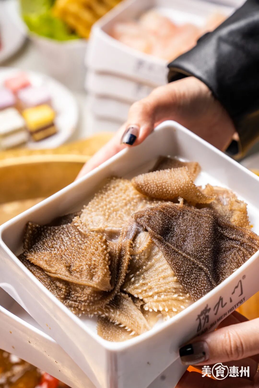 毛肚是火锅的必备,捞九门不愧是专注重庆火锅的老行家,毛肚一点都不含糊,大片毛刺直挺,遵循七上八下原则,出锅汁水四溢,入口脆爽香辣。