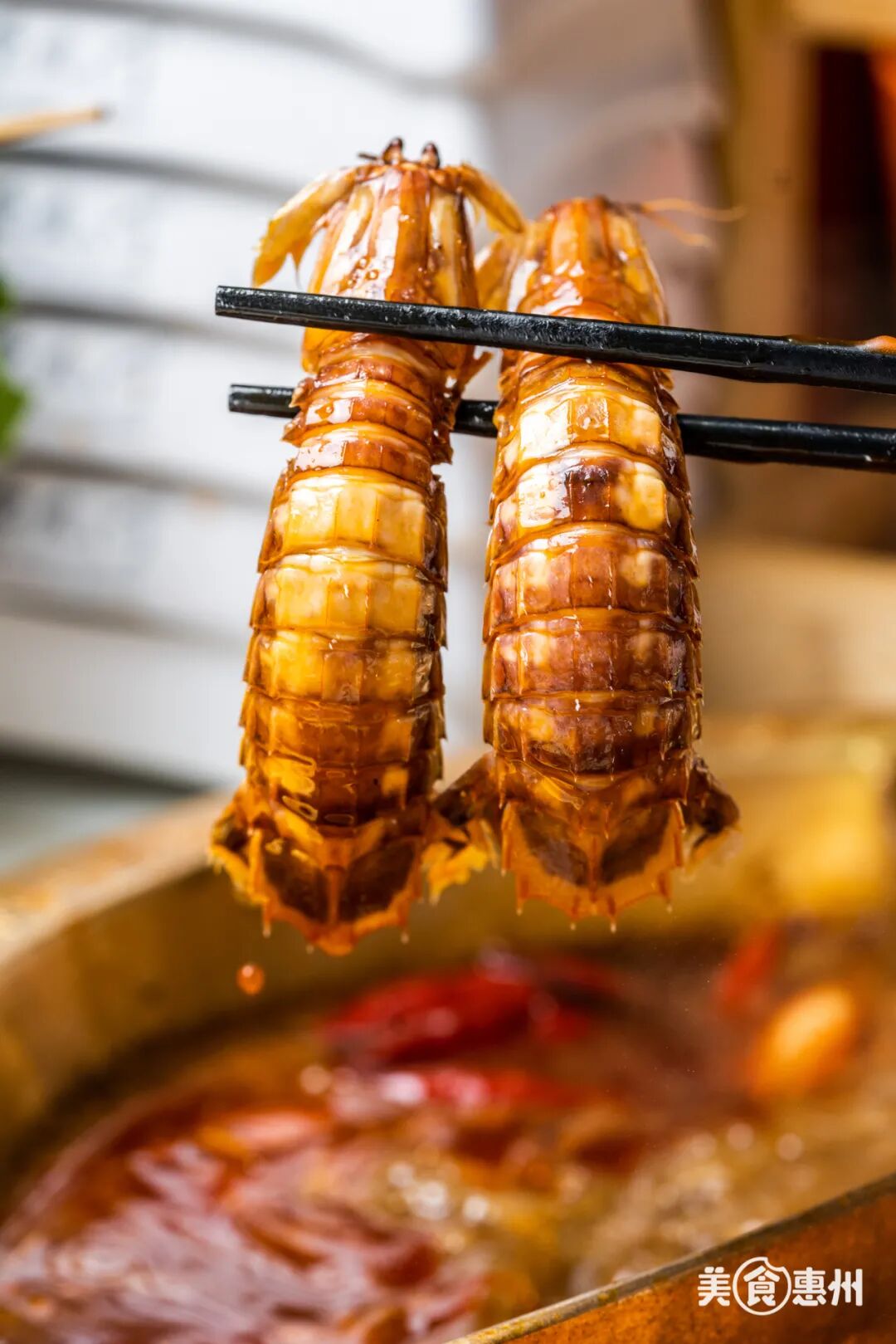 别忘了还有新鲜大虾,大虾经过红油锅的洗礼,活虾进红虾出,饱满Q弹,入口香辣鲜美直上头,现捞现涮,满满一锅吃起来超过瘾!