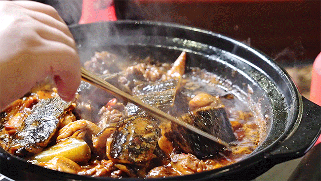 镬气十足的鸡煲,里面的鸡肉散发着金光,汁水浓稠飘香,香的我食欲大发。分量也十足,满满一锅都是肉!