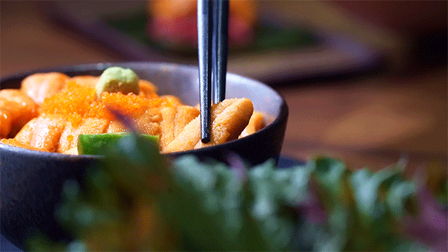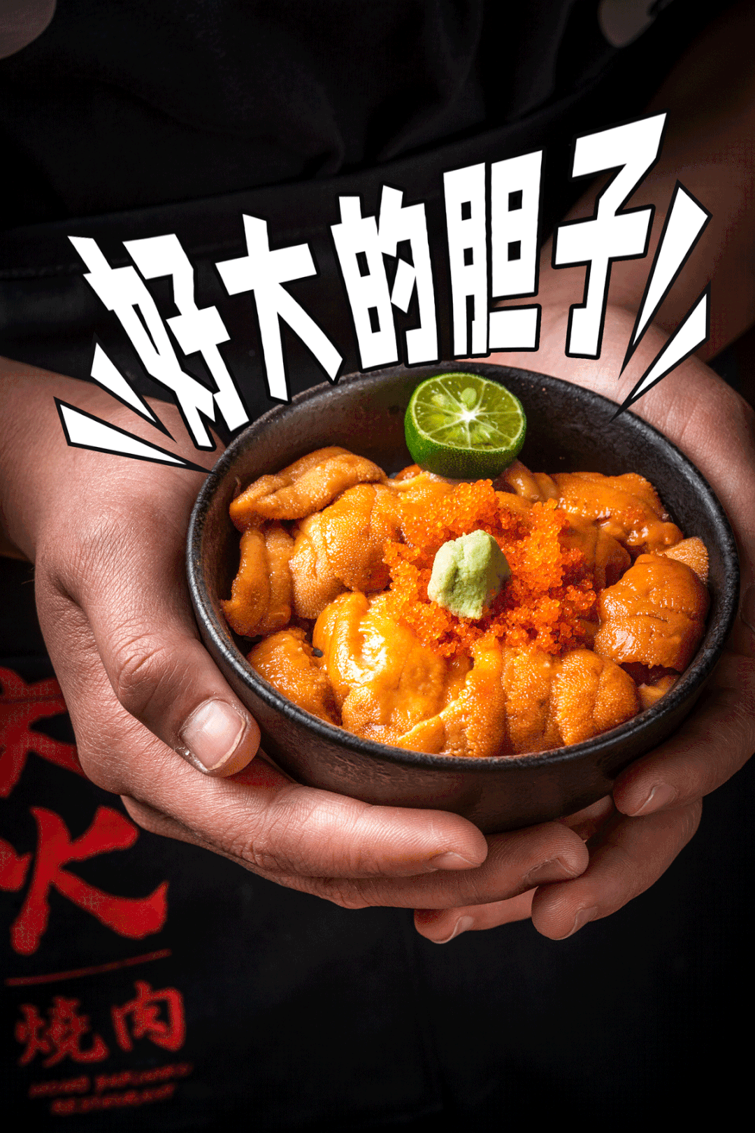 这次上新的,除了海胆,还有M9厚切胸块肉,一头牛只有1kg的产量,越高级的和牛,脂肪和肉的比率越高。价值不用多说,懂吃的老饕一定要来多几盘。