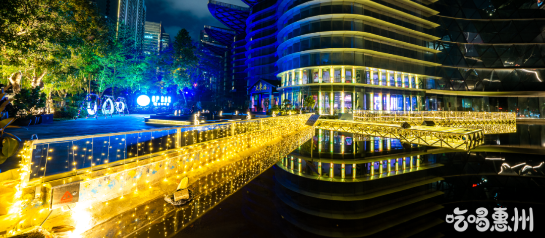 坐落在江北CBD的中心,会展中心的一楼南门。外场霓虹灯光四处照耀,座位整齐排放在水池边,凉风习习,氛围感妥妥的满分!