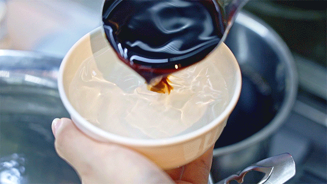 看到我边吃边流泪,老板还特地跟我解释,他们只做正宗成都串串香,嫌不够喉可以加辣,减辣就没内味儿了,吃不了辣的可以多盛几碗冰粉,就在自助调料台,每天限量供应,切记不要浪费哦。